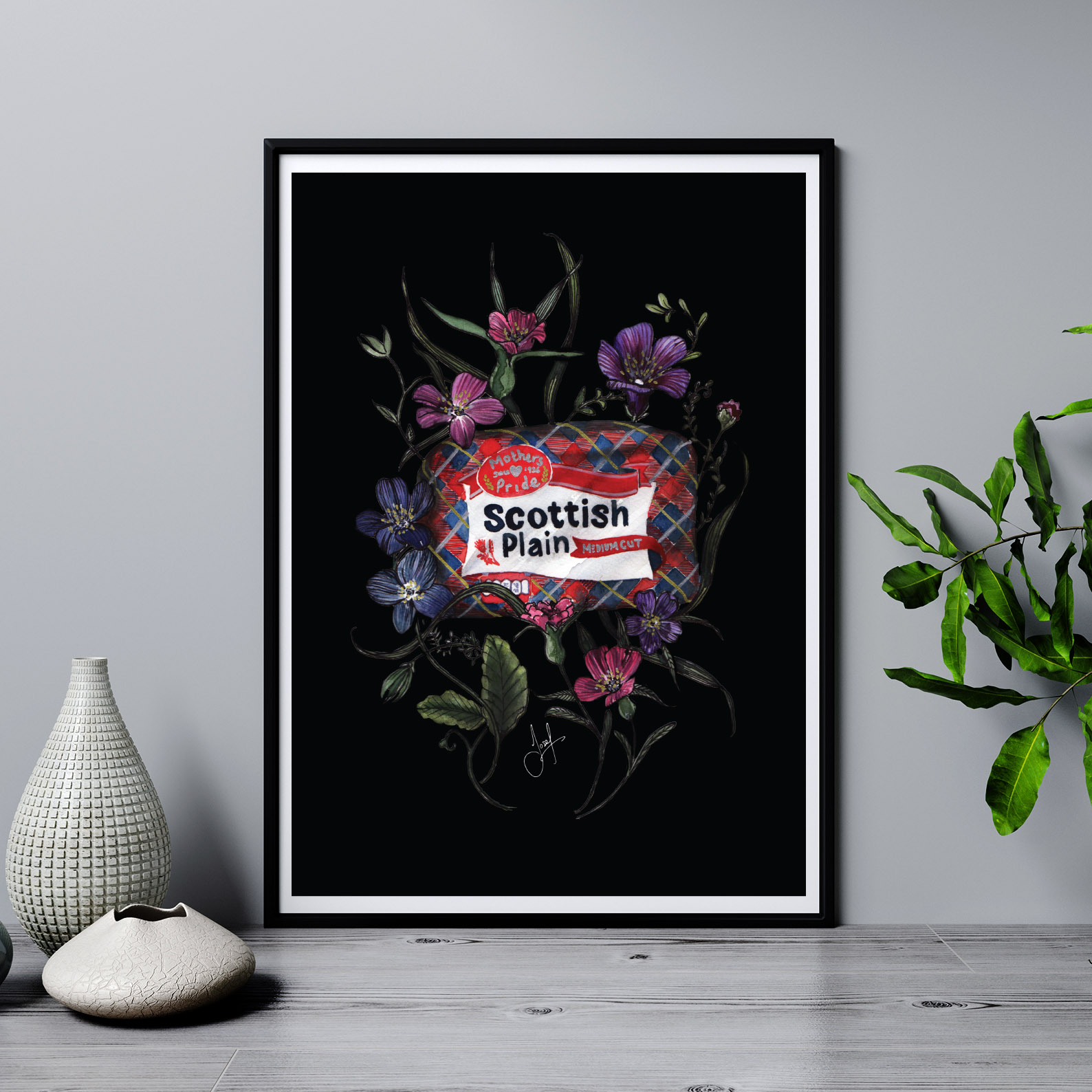 Our unique Scottish art prints are created from original watercolour paintings that combine favourites of everyday Scottish life with the delicate charm of Scottish flowers. Whether you’re shopping for unique Scottish gifts for a pal or just fancy something truly original for your own home, this beauty is ready to steal the show.