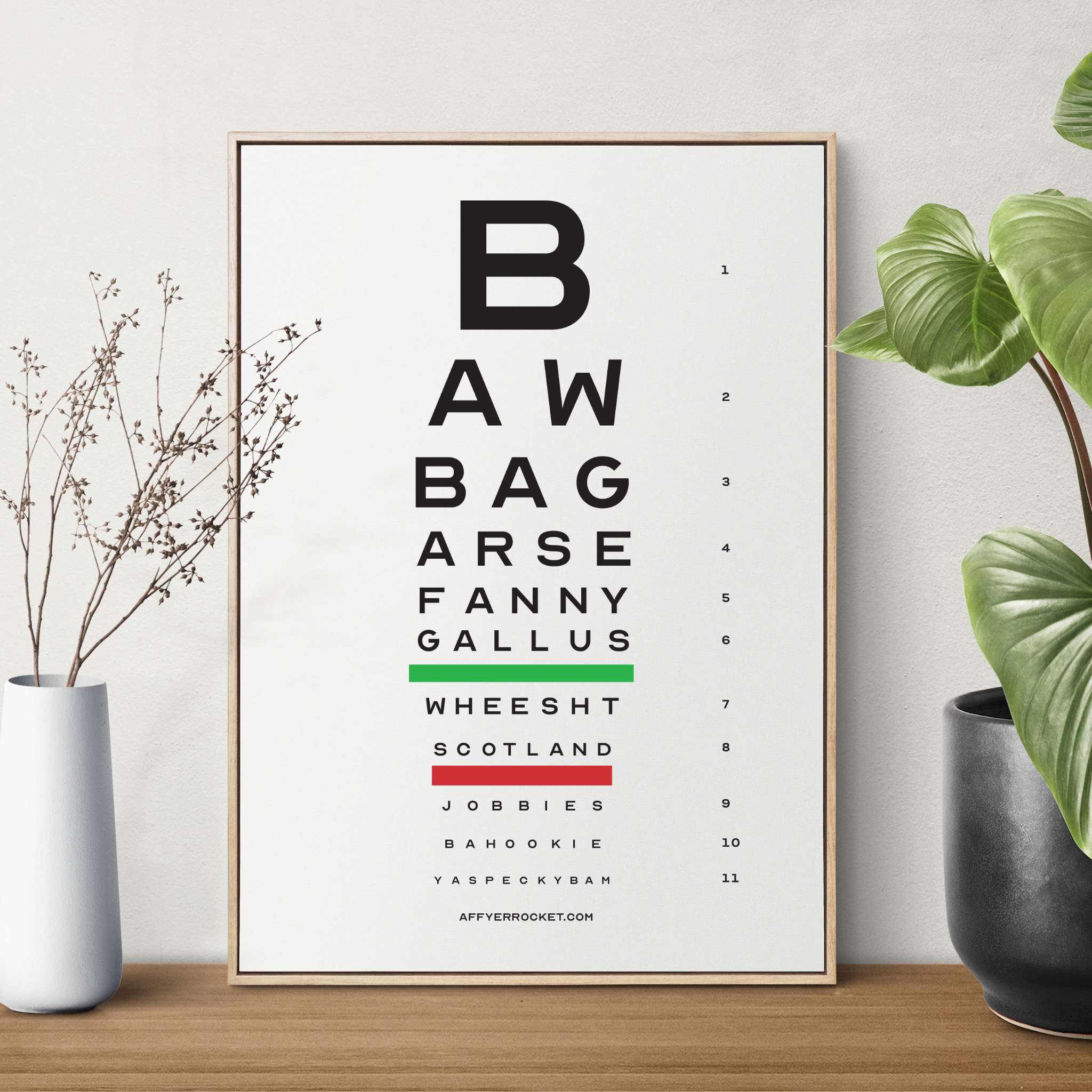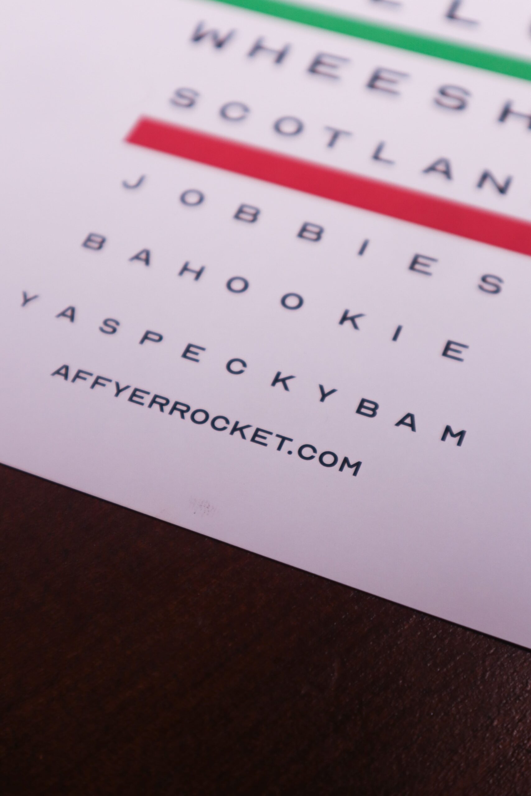 From across the room it looks like a standard eye chart, but step a wee bit closer and you’ll be treated to a full dose of Scottish patter that’ll have ye howlin’!